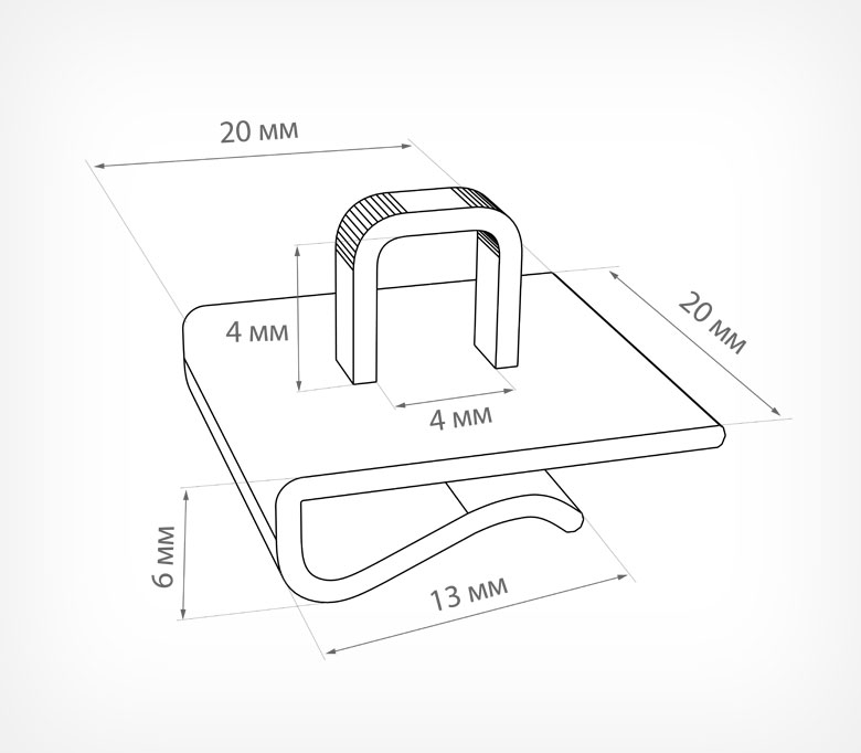 CEILING CLIP — это пластиковая петля-клипса, которая защёлкивается с боковой стороны направляющей стандартного подвесного потолка.