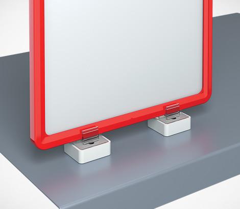 Квадратный магнитный держатель рамки под углом 90° к поверхности и паралельно поверхности, позволяет крепить пластиковые рамки различных форматов на любых металлических поверхностях.