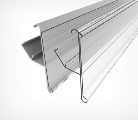 Ценникодержатель для стеллажей MODERN EXPO и КС РУСЬ. Обеспечивает надёжное крепление на краю полки, возможна установка под 2-мя разными углами к поверхности полки (рекомендуется устанавливать ценникодержатели на нижних полках под более острым углом к поверхности полки).