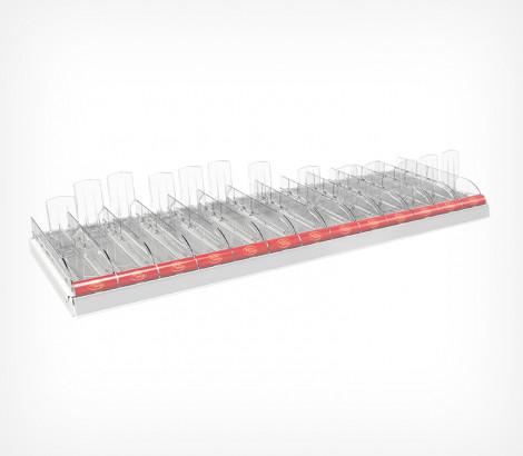Набор из 13 лотков для выкладки плиточного шоколада. Поставляется в собранном виде, благодаря этому установка на полку занимает за считанные секунды. В набор включены цветные вставки во фронт для организации сегментации на полке по типам шоколада. Для полки размером 1250мм.