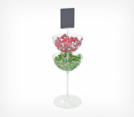 Двухуровневый дисплей UNIBOWL-TOWER-24 предназначен для выкладки продовольственных и непродовольственных товаров в компактной упаковке.