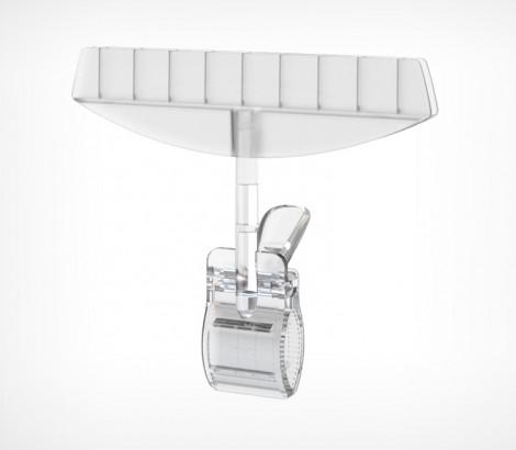 Держатель акрилового кармана или плаката из картона, с зажимом-прищепкой для крепления на трубе ( макс Ø 40 мм), товаре, краю полки (макс.толщина 35 мм). Ширина 150 или 210 мм. Толщина вставки – 3 мм.