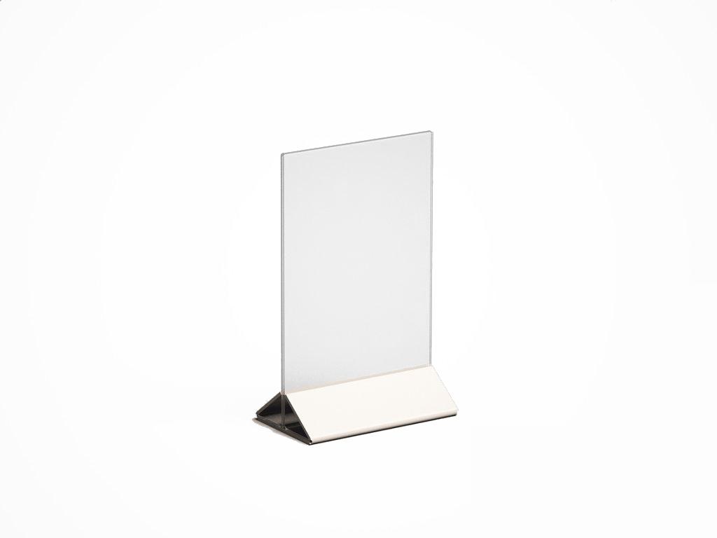 МЕНЮХОЛДЕР ФОРМАТА А-6, С НИЖНЕЙ ЧАСТЬЮ РАЗЛИЧНЫХ ЦВЕТОВ, КЛАСИЧЕСКОГО ВИДА. СОСТОИТ ИЗ ДВУХ ЧАСТЕЙ, ПРОЗРАЧНОГО Т-ОБРАЗНОГО ПЛАНШЕТА И НИЖНЕГО ДЕРЖАТЕЛЯ, ТРЕУГОЛЬНОЙ ФОРМЫ. ВОЗМОЖНО НАНЕСЕНИЕ ЛОГОТИПА.
