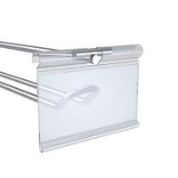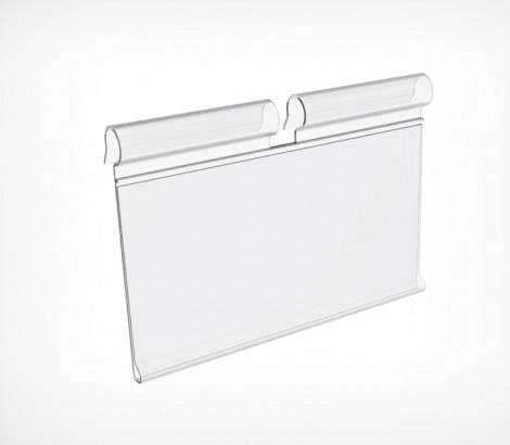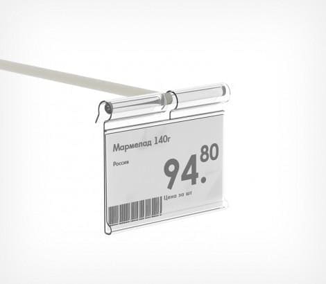 Крепится на Т-образные одинарные и двойные металлические крючки. Откидывается вверх при снятии товара с крючка. Высота держателя - 26, 39, 52, и 60 мм.
