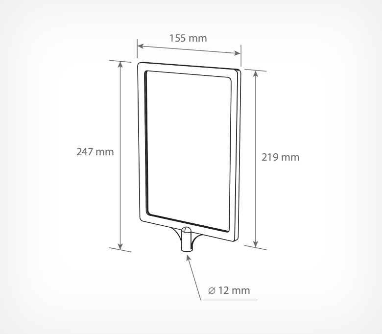 Рамка PFT-A5 с интегрированным Т-держателем позволяет создавать удобные напольные и настольные стойки на пластиковых подставках или магнитных основаниях для демонстрации листовок, ценников и объявлений формата А5.