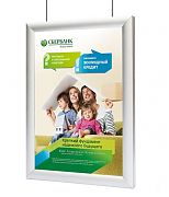 Односторонняя подвесная модель световой панели, применяется там где нет возможности закрепить панель непосредственно к вертикальной поверхности. Но возможно закрепить панель к потолку, например в оконном проеме витрины. Панели оснащены блоком питания, сетевым шнуром, для подключения к сети, тросом и креплениями для подвешивания, полностью готовы к использованию. Отщелкивающийся профиль KLIK, в лицевой части панели, позволяет легко менять информацию.