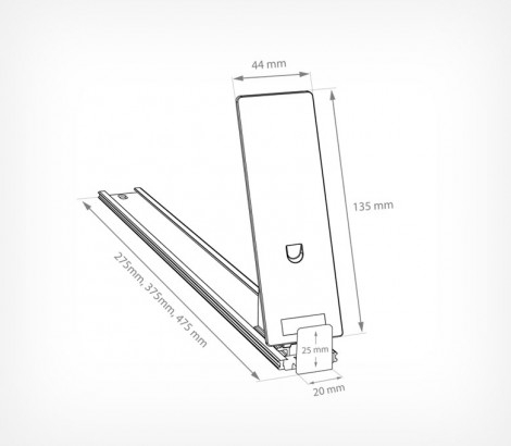 Толкатель FORTA GROSSA-1 наклон.44х132 с огрн.20х25 мм 7-11 ньютонов — с наклонной толкающей поверхностью, с передним ограничителем, используется с товарами в высокой и твёрдой упаковке, с неустойчивым основанием, подходит для средних по весу и лёгких товаров: сырной, мясной и рыбной нарезок. При использовании с широкими упаковками рекомендуется установка двух толкателей для одного ряда продуктов.