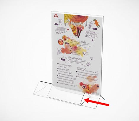 МЕНЮХОЛДЕР КЛАСИЧЕСКОГО ВИДА. СОСТОИТ ИЗ ДВУХ ЧАСТЕЙ, У-ОБРАЗНОГО ПЛАНШЕТА И НИЖНЕГО ДЕРЖАТЕЛЯ, ТРЕУГОЛЬНОЙ ФОРМЫ. возможно размещение логотипа в треугольной части держателя, на бумажном носителе.